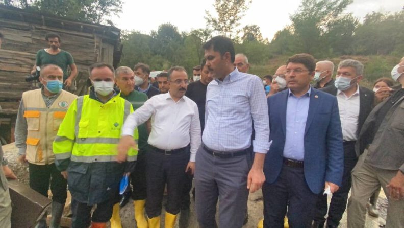 Çevre ve Şehircilik Bakanı Murat Kurum, Bartın’da yaşanan sel felaketi sonrasında incelemelerde bulunmak için bölgeye geldi. Bakan Kurum, sağanak yağışın etkili olduğu bölgeler arasında yer alan Ulus ilçesine bağlı Akörensöküler köyüne geldi. Kurum, burada 85 yaşındaki Arife Ünal’ın sel sularına kapıldığı evinin önünde incelemelerde bulundu.