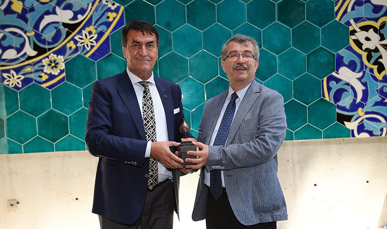 Başkan Dündar, ziyaretin anısına Prof. Dr. Emin Balkan’a Orhan Gazi’nin miğferinin replikasını hediye etti.