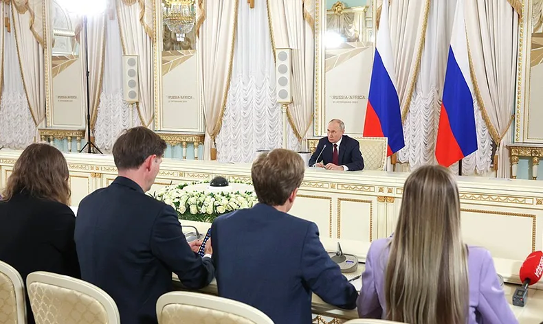Rusya Devlet Başkanı Vladimir Putin, St. Petersburg’da gerçekleşen Rusya – Afrika zirvesinin ardından basın toplantısı düzenledi. Güncel konulara dair birçok soruyu cevaplayan Putin açıklamalarında ABD ve batılı ülkelere gözdağı vermeye devam etti. Bir gazetecinin, Rusya ile NATO arasında Suriye’de çatışmaya grime gibi bir olasılığının olup olmadığını sorması üzerine, “Bizde bir zamanlar Amerikan tarafının talebiyle bu çatışmaları önlemek için bir mekanizma kurduk. Bazı birim başkanları birbiriyle iletişim kuruyor ve yetki hakkı bulunuyordu. Herhangi bir kriz durumu istişare ediliyordu. Bu kimsenin çatışmayı istemediğini gösteriyordu. Ancak böyle bir çatışmayı birileri isterse biz hazırız” dedi. Rusya ve Afrika ilişkilerine de değinen Putin, “Genel olarak Afrika ülkelerinin bize karşı tutumları dostane ve olumlu. Bağımsızlık mücadelelerinde yaşananları herkes hatırlıyor” diyerek Afrika ülkeleri ile iyi ilişkilerin geçmişe dayandığını vurguladı. Putin ayrıca Afrika ülkeleri ile özellikle askeri alanda işbirlikleri yapmak istediklerini söyleyerek, “Afrika ülkeleri Rusya ile askeri-teknik alanda işbirliği yapmak istiyor. Afrikalı dostlarımız sadaka istemiyor. Onlarla ortak projeler hayata geçireceğiz” şeklinde konuştu.