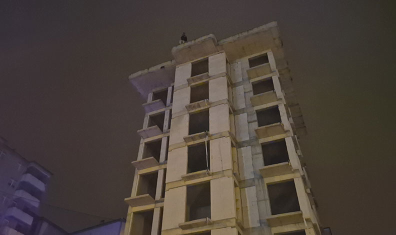 Bartın’ın Aladağ Mahallesi 14. Cadde İl Emniyet Müdürlüğü karşısındaki inşaat halindeki 8 katlı binanın çatısına çıkan bir kişi intihar etmek istedi. Olay yerine çok sayıda polis, sağlık ve itfaiye ekibi sevk edildi. Şahsın atlama ve düşme ihtimaline karşı zemine hava yastığı açılırken, polisler uzun süre şahsı ikna etmeye çalıştı. Şahsın alkollü olduğu öğrenilirken olay öncesinde ise babası ile tartıştığı öğrenildi. Şahsın C.K. olduğunu belirleyen polisler yakınlarına ulaştı. Olay yerine gelen C.K.’nin bir yakını ve polis ekipleri şahsı aşağıya inmeye ikna etti. İnsanların büyük ilgiyle izlediği olayda aşağıya indirilen şahıs hastaneye götürülürken ardından ise ifadesi alınmak üzere polis merkezine götürüleceği öğrenildi.