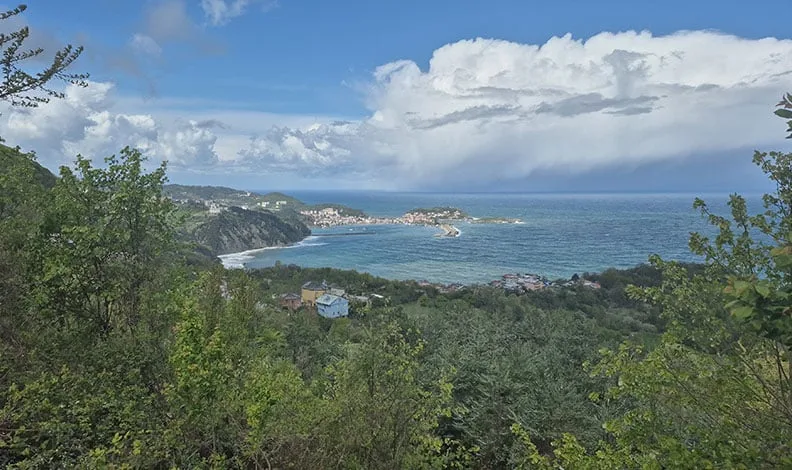 Denizin üstünden Amasra ilçesine uzanan kar bulutları, eşsiz görüntülere sahne oldu.