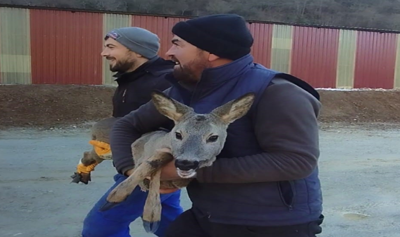 Boş havuzun yanına gelen baba ve oğul yaralı karacayı düştüğü havuzdan çıkarmak için dakikalarca uğraştı. En sonunda havuz içerisindeki karacayı çıkaran ve yaralarına müdahale eden Aydoğdu Düzgün, daha sonra hayvanı doğaya saldı.