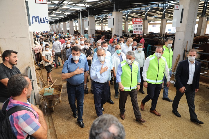 Büyükşehir Belediye Başkanı Alinur Aktaş, Osmangazi Belediyesi tarafından Bursa’ya kazandırılan Veysel Karani Kurban Kesim ve Satış Yeri’ni ziyaret etti. 70 bin metrekare alana kurulan Türkiye’nin en modern kurban satış ve kesim yeri olan tesisde, 15 bine yakın büyükbaş ve küçükbaş hayvan satışa sunuluyor. Arefe günü satış yapan esnafla sohbet eden Büyükşehir Belediye Başkanı Alinur Aktaş, hem satıcı hem de alıcıların pandemi sürecinde sosyal mesafe, maske ve temizlik kurallarına uymasını istedi. Bursa Milletvekilleri Mustafa Esgin, Ahmet Kılıç, Refik Özen, AK Parti İl Başkanı Ayhan Salman, Osmangazi İlçe Başkanı Ufuk Cömez’in de yer aldığı ziyarette tesis hakkında bilgi veren Osmangazi Belediye Başkanı Mustafa Dündar, vatandaşın tesislerden büyük memnuniyet duyduğunu dile getirdi.