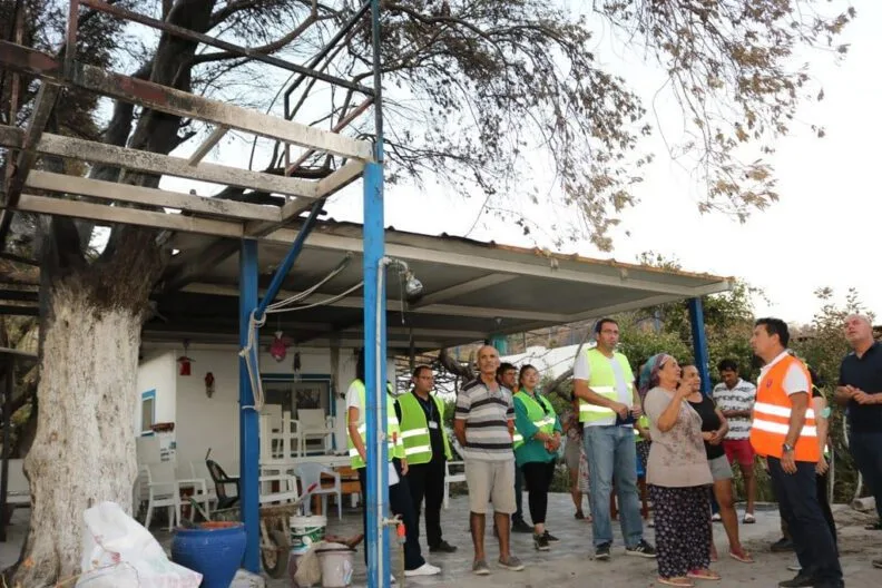 Bodrum Belediye Başkanı Ahmet Aras’ın talimatı ile oluşturulan Hasar Tespit Komisyonu, yangında zarar gören yurttaşların acil ihtiyaçlarını karşılamak ve gerekli girişimlerde bulunmak için çalışmalara başladı. İlk olarak Mazı Mahallesi’nde görev yapan komisyon, yangın bölgelerinde hasar görmüş ev ve iş yerlerinde incelemeler yapıyor.