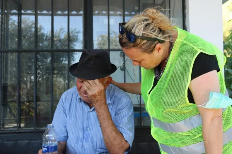 88 yaşındaki Hasan Akkaş yanan ağaçlar için gözyaşlarını tutamadı. Burada doğduğunu 88 yaşında olduğunu ve ömrünün burada geçtiğini ifade eden Akkaş, elleriyle diktiği ağaçların yok olduğunu izlemek zorunda kaldığı için çok üzgün olduğunu söyledi.