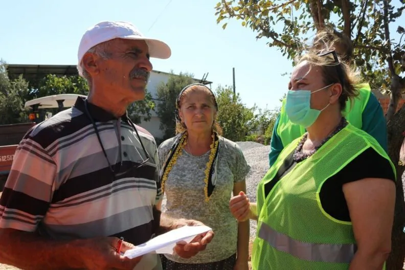 Bodrum Belediyesi Başkanı Ahmet Aras’ın geçmiş olsun dileklerini ileten Yurt, vatandaşları tek tek ziyaret ederek onları dinledi. Başkan Yardımcısı Yurt, belediyenin her zaman yanlarında olduğunu ifade ederek yaraları saracaklarını, tüm sıkıntıları birlikte aşacaklarını belirtti, “Yangında yaşanan zararları tespit için buradayız. Belediye olarak elimizde ne gelirse hızlı bir şekilde tedarik etmek istiyoruz. Başkanımız ilk günden bu yana buradaydı. Ahmet Başkan’ımız her yerdeydi. Her zaman yanınızda olacak. Siz bizim baş tacımızsınız. Hasta olan vatandaşları doktora götürebiliriz. Sizin için buradayız. Bazı köylerimizde telefon iletişiminde yaşanan sıkıntılar için gerekli girişimlere bulunacağız. Besi hayvanlarınız için yem,yine hayvanlarınızın tedavileri gibi ihtiyaçlarınızda tüm ekiplerimiz sizlerin emrindedir” dedi.