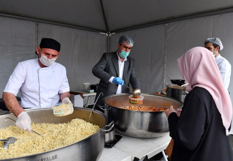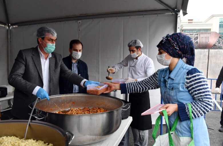 Osmangazi Belediye Başkanı Mustafa Dündar, Elmasbahçeler’de kurulan iftar çadırında kazanların başına gelerek vatandaşlara yemek dağıttı. Zabıta ekiplerinin kontrolünde gerçekleşen dağıtımda vatandaşlar, yemekleri kaplarına doldurarak evlerine götürdü.