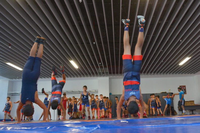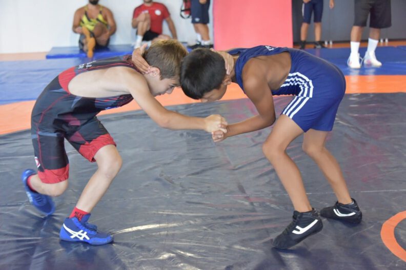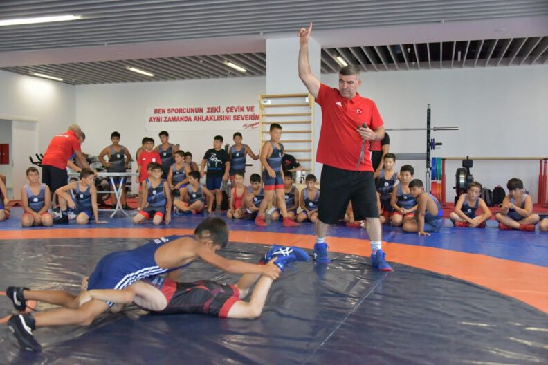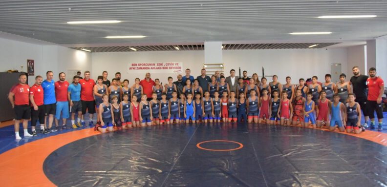 Antalya’da gerçekleştirilen Minikler Türkiye Şampiyonası’nda kendi sıkletlerinde dereceye giren 130 sporcu Yeni Şakran’da kampa girdi. Altyapının geliştirilmesi, sporcuların uluslararası şampiyonalara hazırlanması ve A Takıma sporcu yetiştirilmesi amacıyla yapılan kampta Türkiye’nin dört bir yanından sporcu yer alıyor. Yaklaşık bir haftadır kampta olan milli güreşçiler minder çalışmaları için Aliağa Gençlik Merkezi’ni tercih etti. Türkiye’nin güreşteki geleceği olan sporcuları antrenmanda ziyaret eden Aliağa Belediye Başkanı Serkan Acar, bir süre antrenmanı izledikten sonra sporcularla sohbet etti.