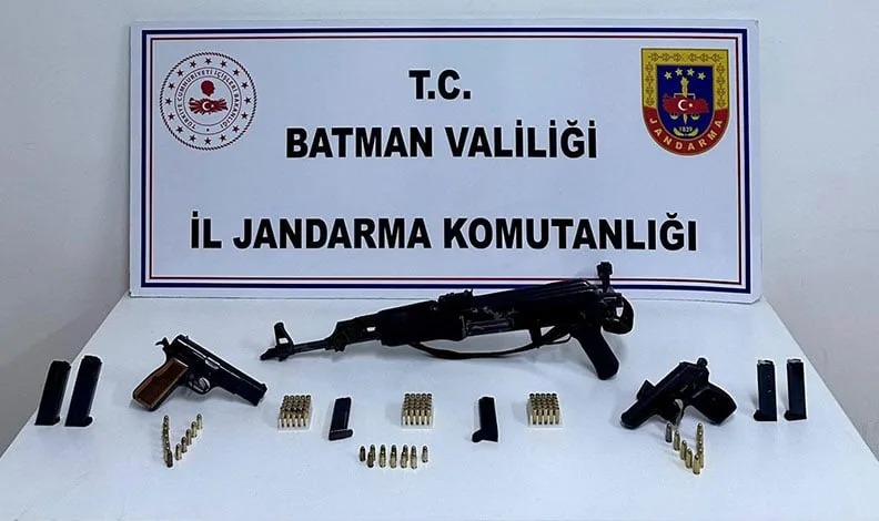 Batman Valiliğinden konuyla ilgili yapılan açıklamada, İl Jandarma Komutanlığı, Kaçakçılık ve Organize Suçlarla Mücadele Şube Müdürlüğü (KOM) ekiplerince alınan istihbarı bilgiye istinaden yapılan takip neticesinde Ş.S. isimli şahsın kaçarken attığı çuval içinde 1 adet kaleşnikof piyade tüfeği ve 2 adet şarjörü olduğu tespit edildiği belirtildi. Açıklamada, “Şahsın ikametinde alınan izinle yapılan aramada bir adet 7,65 milimetre tabanca, bir adet 9 milimetre tabanca, 8 adet şarjör, 98 adet 7,62 milimetre fişek, 9 adet 9 milimetre fişek ele geçirilmiştir” denildi.