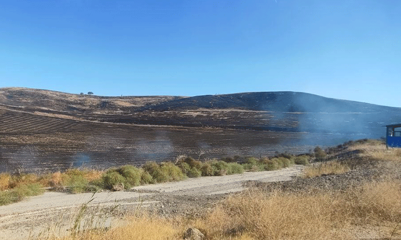 Halen söndürme çalışmaları devam eden yangında, anız ve kuru otlar yanarken, yanan tarlalarda bulunan çok sayıda hayvanda telef oldu.