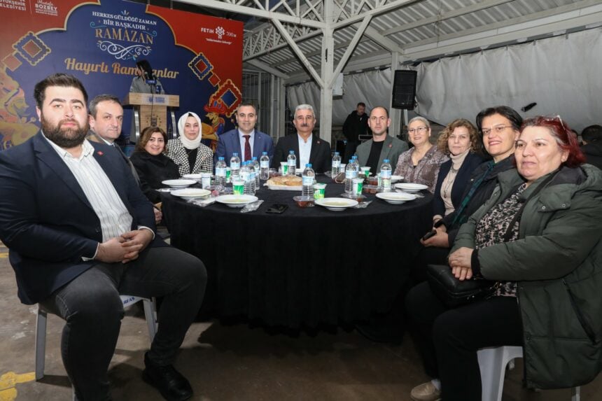 Ramazan ayı boyunca 4 farklı noktada oluşturduğu sabit noktalarda her gün binlerce Bursalıyı iftar sofralarında misafir eden, 14 farklı bölgede ise iftara yolda yakalananlara iftariyelik dağıtan Bursa Büyükşehir Belediyesi, 17 ilçede düzenlediği iftar programlarına ise Yıldırım’la devam etti. Gökdere Kapalı Pazar Alanı’ndaki programa, Bursa Büyükşehir Belediyesi Başkanvekili Mehmet Aydın Saldız, CHP Bursa İl Başkanı Nihat Yeşiltaş, siyasi parti temsilcileri, meclis üyeleri, muhtarlar, sivil toplum kuruluşlarının temsilcileri, Büyükşehir Belediyesi yöneticileri ve vatandaşlar katıldı.
