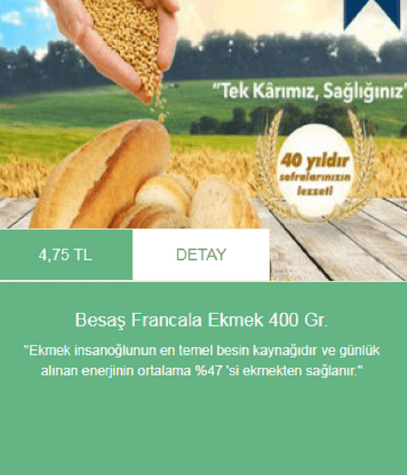 1 yıl içerisinde 4 kez fiyatı artan BESAŞ ekmeğinin yeni fiyatı 4 lira 75 kuruş oldu. Yeni fiyat tarifesi bugünden itibaren uygulanmaya başlandı. BESAŞ’ın sitesinde de ekmeğin fiyatı 4 lira 75 kuruş olarak güncellendi.