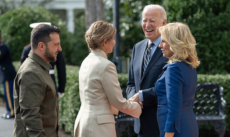 Amerika Birleşik Devletleri’nin (ABD) başkenti Washington’da bulunan Ukrayna Devlet Başkanı Volodimir Zelenski, Beyaz Saray’da ABD Başkanı Joe Biden ile bir görüşme gerçekleştirdi. Oval Ofis’teki toplantı öncesinde Biden ve Zelenski gazetecilere kısa açıklamalarda bulundu. Biden, ülkesinin Rusya’ya karşı topraklarını savunması için Ukrayna’ya yardım etmemesi halinde hiçbir ülkenin güvende olmayacağını söyledi. Zelenski ise Biden ve ABD Kongresi’ne samimi ve yapıcı diyalogları için teşekkür etti.