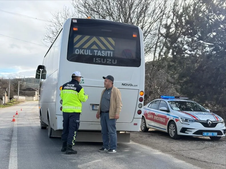 Bozüyük İlçe Jandarma Komutanlığı ekiplerince Bozüyük-Tavşanlı yolu güzergâhında ‘K11-Okul Servisi Denetimi’ faaliyeti kapsamında uygulama yapıldı. Gerçekleştirilen denetimlerde 4 okul taşıtı kontrol edilirken, herhangi bir cezai işlem uygulanan araç bulunmadığı öğrenildi.