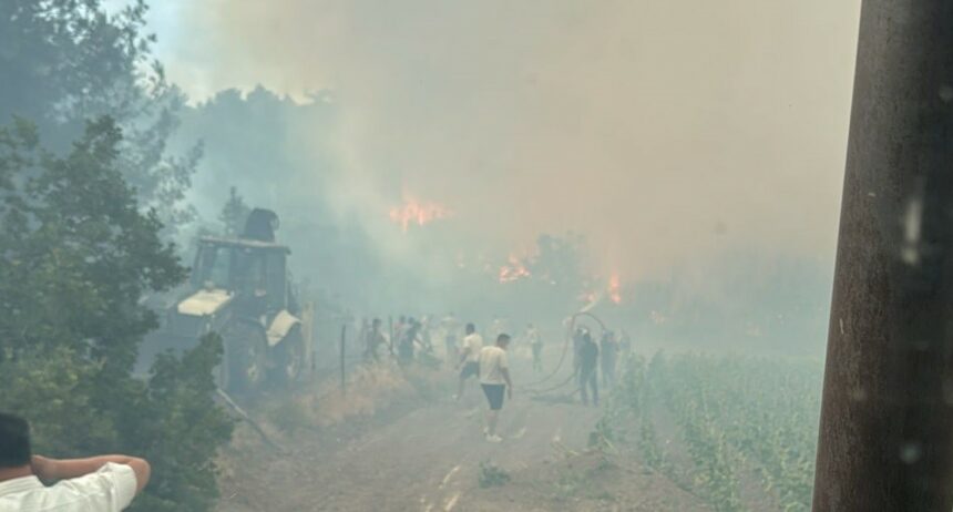 Köylüler alevlerin önünü kesmek için iş makineleri ile ekili alanları temizlerken, orman işçileri de sık orman alanlarında ağaçları keserek yangının büyümesi engellemeye çalışıyor. 3 helikopter, 1 İHA, 30 arasöz, 37 iş ve hizmet aracı ile söndürmek için mücadele eden ekiplere, köylüler de su taşıyor. Bölgede çok sayıda besihane olması vatandaşları tedirgin ederken, büyük ve küçükbaş hayvanların tahliye edileceği öğrenildi.