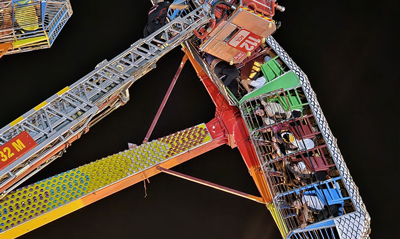 Olay, Kahramanmaraş Fuar Merkezi’ndeki lunaparkta meydana geldi. Alandaki oyun gruplarında eğlenmeye çalışan bir grup vatandaş ‘çekiç’ isimli oyuncağa bindi. Bir müddet ters taklalar atarak içerisindeki yaklaşık 50 kişiyi eğlendiren cihaz bir anda bozulunca vatandaşlar havada asılı kaldı. Eğlence mekanında korku dolu anlar yaşayan ve baş aşağı asılı şekilde beklemek zorunda kalan vatandaşlar büyük panik yaşadı.