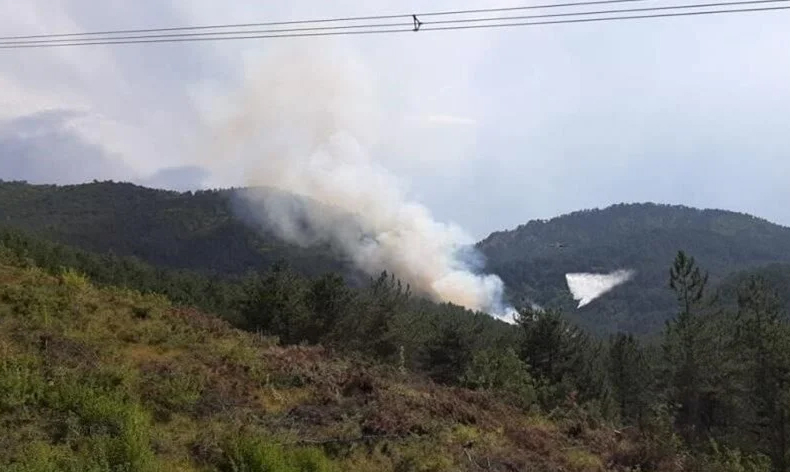 Yangına, 1 helikopter, 5 arazöz, 1 su ikmal ve 1 dozer ile müdahale edildi.