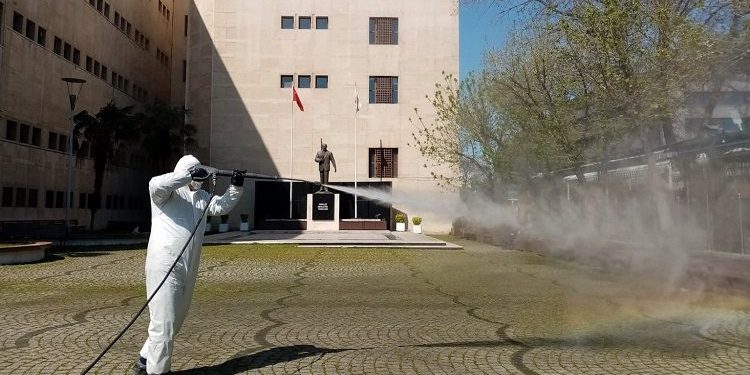 Tüm dünyayı etkisi altına alan korona virüs salgınının yayılmasını önlemek için tedbirlerini arttıran Osmangazi Belediyesi, ilçe genelinde virüse karşı adeta savaş açtı. Vatandaşların yoğun olarak kullandığı meydan, cadde, sokak ile ibadethanelerde temizlik çalışmalarını aralıksız sürdüren ekipler, son olarak İstanbul yolundaki yeni adliye binası ve Uluyol’daki eski adliye binasını dezenfekte etti. Adliyede duruşma salonlarından oturma alanlarına, kapı kulplarından otoparka kadar tüm bloklar iki gün boyunca büyük bir titizlikle ilaçlandı. Toplam bin 100 odanın dezenfekte edildiği çalışma, özel koruma kıyafetli ve maskeli temizlik görevlileri tarafından yapıldı.
