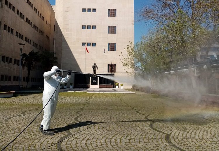 Tüm dünyayı etkisi altına alan korona virüs salgınının yayılmasını önlemek için tedbirlerini arttıran Osmangazi Belediyesi, ilçe genelinde virüse karşı adeta savaş açtı. Vatandaşların yoğun olarak kullandığı meydan, cadde, sokak ile ibadethanelerde temizlik çalışmalarını aralıksız sürdüren ekipler, son olarak İstanbul yolundaki yeni adliye binası ve Uluyol’daki eski adliye binasını dezenfekte etti. Adliyede duruşma salonlarından oturma alanlarına, kapı kulplarından otoparka kadar tüm bloklar iki gün boyunca büyük bir titizlikle ilaçlandı. Toplam bin 100 odanın dezenfekte edildiği çalışma, özel koruma kıyafetli ve maskeli temizlik görevlileri tarafından yapıldı.