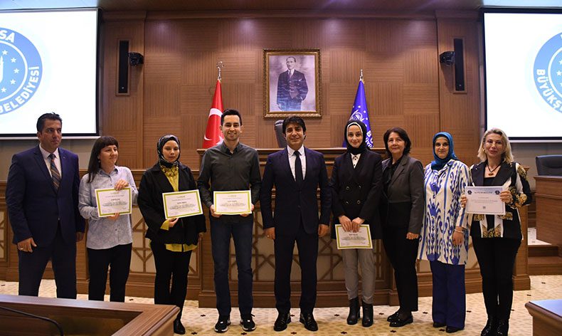 Eğitmenler; AÇEV Bursa Şubesi Temsilcisi İsmail Çevik, Bursa Teknik Üniversitesi’nden Prof. Dr. Ali İhsan Kadıoğulları, Bursa Büyükşehir Belediyesi Eğitmenleri Aykan Özyürek, Burçin Öner Gezer, Pelin Feymi, Nursema Çiftçi, Başak Saygı Şahin, Adem Akçora ile 11 eğitimde dereceye giren 6 personelin hediyeleri Bursa Büyükşehir Belediyesi Genel Sekreteri Ulaş Akhan tarafından verildi. Büyükşehir Belediyesi Genel Sekreter Yardımcısı Ahmet Aka, İnsan Kaynakları ve Eğitim Dairesi Başkanvekili Emine Nadir ve Eğitim Şube Müdürü Mahmut Turunç da personeli katılım sertifikalarını verdi.