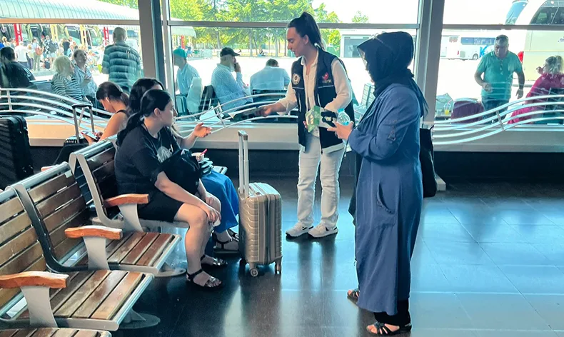Vatandaşların yoğun olduğu bölgelerde bilgilendirme yapan ekipler, otobüs terminalinde 5 bin 620 vatandaşa ulaşarak broşür dağıttı.