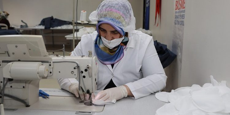 BUSMEK koordinasyonunda planlanan Büyükşehir Belediyesi Önlük ve Maske Üretim Atölyesi, faaliyetine başladı. Büyükşehir Belediye Başkanı Alinur Aktaş, Atıcılar Mahallesi’ndeki Büyükşehir Belediyesi Evde Bakım ve Ambulansla Nakil Hizmet Binası’nın ikinci katında oluşturulan tesisi gezdi. Genel Sekreter Ulaş Akhan’ın da eşlik ettiği ziyarette, BUSMEK Genel Koordinatörü Eyüp Arda’dan atölyenin işleyişi hakkında bilgiler alan Başkan Aktaş, çift vardiyada 26 kişinin görev yaptığı tesiste banttan çıkan ürünleri de inceledi.