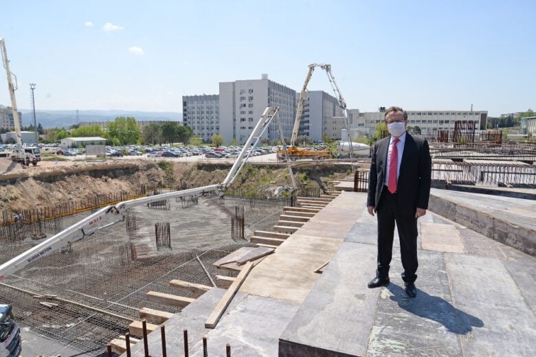 Bursa’da 20 bin metrekaresinin kültür merkezi olarak kullanılacağı Uludağ Üniversitesi (BUÜ) Yeni Camii’nde inşaat devam ediyor. Üniversite Rektörü Prof. Dr. Ahmet Saim Kılavuz, Cumhurbaşkanı Recep Tayyip Erdoğan’ın talimatıyla Görükle Yerleşkesi’nde temeli atılan Yeni Camii için hayırseverlerden destek beklediklerini söyledi.