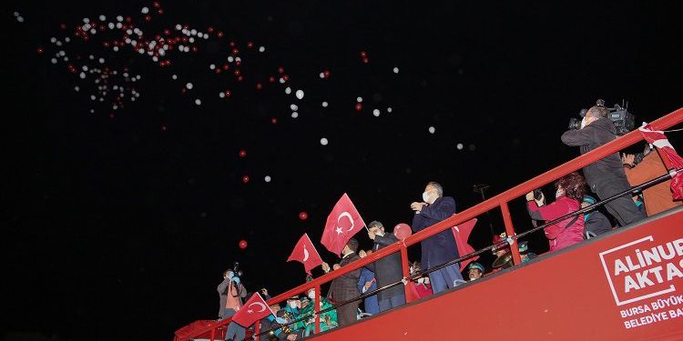 Çocuklar ve ailelerini final gecesinde yalnız bırakmayan Büyükşehir Belediye Başkanı Alinur Aktaş, elinde Türk bayrağıyla İstiklal Marşı’nı söyleyerek vatandaşların sevincine ortak oldu.