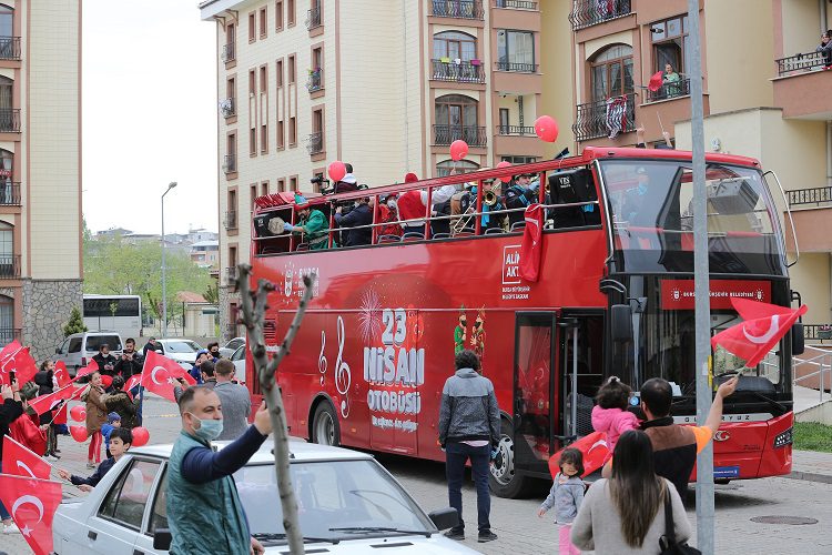 Büyükşehir Belediyesi Bando Takımı ve Hacıvat-Karagöz orta oyuncularını taşıyan 23 Nisan otobüsü, mahalle mahalle dolaşarak, başta çocuklar olmak üzere vatandaşlar için mini konserler verdi, gösteriler düzenledi.