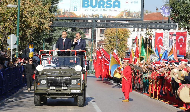 Cumhuriyet Bayramı’nın 99. yıl kutlamaları çerçevesinde Vali Yakup Canbolat, Bursa Büyükşehir Belediye Başkanı Alinur Aktaş ve protokol mensupları tebrikleri kabul etti. Heykel meydanında düzenlenen törene vatandaşların ilgi gösterdi.
