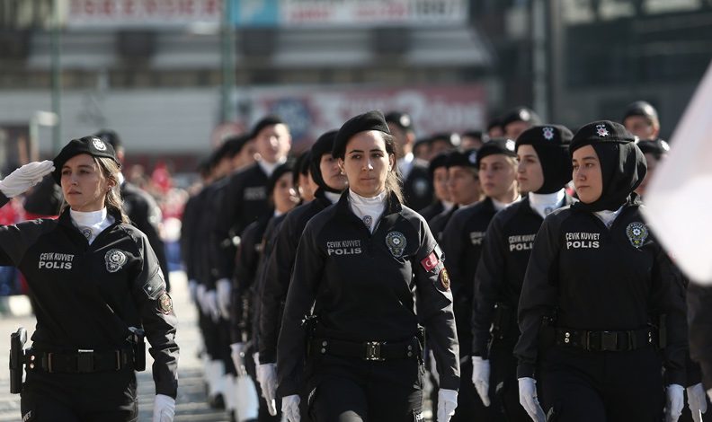 Geçiş törenine öğrenciler bayraklarıyla katılırken, asker ve polisler de bol bol alkış aldı.