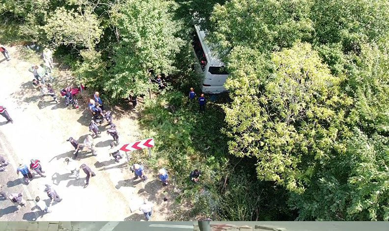 Ayrıca, otobüs kazasının yaşandığı keskin virajlı yokuş aşağı olan yollar ve otobüsün uçtuğu alan havadan görüntülendi.