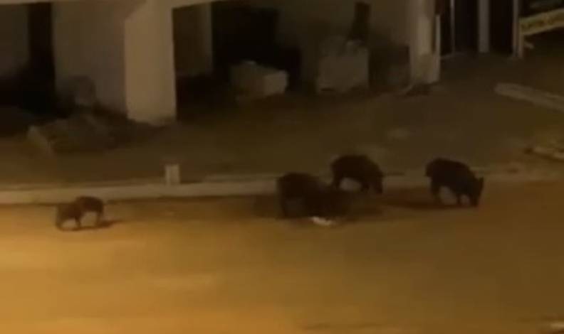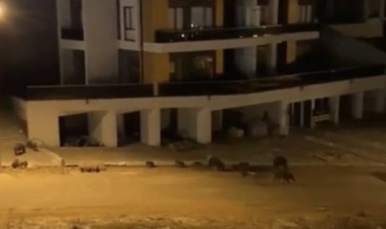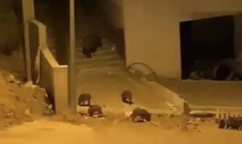 Bursa’nın Mudanya Halilpaşa Mahallesinde aç kalan domuz sürüsü yemek aramak için şehir merkezine indi.