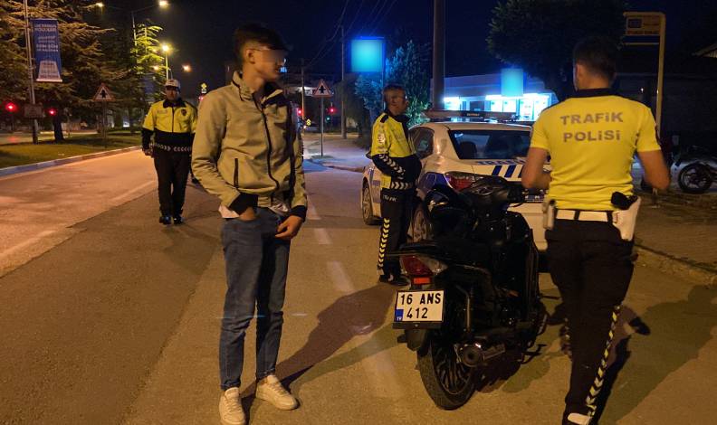 Uygulamada bir motosiklet ekiplerce durduruldu. Yapılan incelemede motosikletin sürücüsü Berat Ö.’nün (16) ehliyetsiz olduğu tespit edildi. Cezai işlem uygulandığı sırada motosiklet sürücüsü Berat Ö., polis ekiplerine ceza yazmamaları konusunda ısrarda bulundu.
