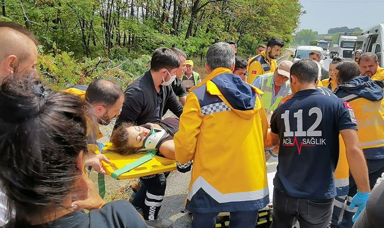 Kaza sonucu hurdaya dönen araçtaki sürücü ile eşi Seval Bektaş (48) ve kızları Ayça Bektaş (21) sıkışarak yaralandı. Olay yerine çok sayıda 112, polis ve jandarma ekibi sevk edildi.