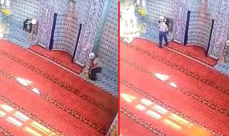 Caminin güvenlik kamerasına yansıyan görüntülerde, bir kişinin camiye girerek önce etrafı kontrol ettiği görüldü. Daha sonra hırsız mihrabın yanında duran iki şamdanın önce fişlerini çekerek daha sonrasında alıp camiden çıktı.