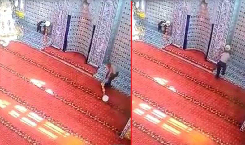 Caminin güvenlik kamerasına yansıyan görüntülerde, bir kişinin camiye girerek önce etrafı kontrol ettiği görüldü. Daha sonra hırsız mihrabın yanında duran iki şamdanın önce fişlerini çekerek daha sonrasında alıp camiden çıktı.
