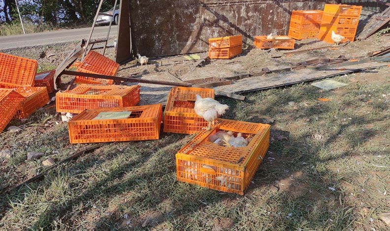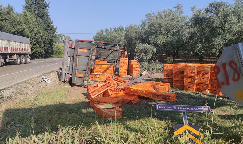 Ölen ya da yaralananın olmadığı kazada etrafa saçılan kafes içindeki tavuklar olay yerine çağrılan bir başka tıra aktarıldı.