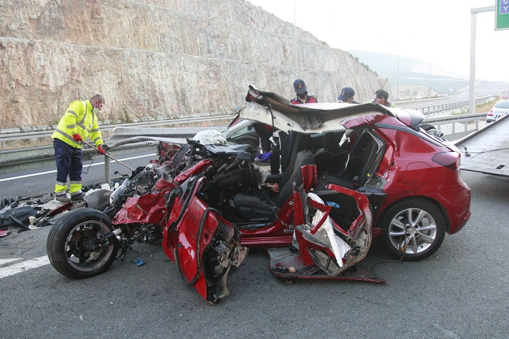 Bursa’da, kontrolden çıkarak, yol kenarındaki bariyerlere çarpıp, hurdaya dönen otomobildeki sürücü Meltem Duygulu (24) yaşamını yitirdi, kardeşi Damla Duygulu (20) ise ağır yaralandı.