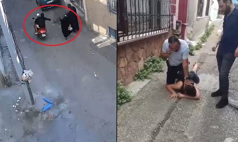 K.A.’nın yürüdüğü esnada sırt çantasını motosikletli iki şüphelinin kapkaç yöntemiyle çaldığı anlar sokak üzerinde bulunan bir evin güvenlik kamerasına saniye saniye yansıdı.