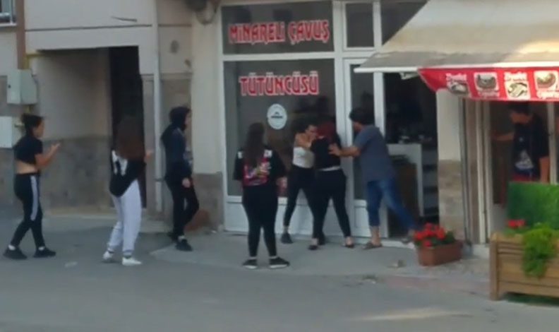 İddiaya göre, iki kız grubu arasında çıkan tartışmada genç kızlar saç saça birbirine girdi. Birbirlerine hakaret ederek yerde sürükleyen kızları yoldan geçen bir otomobil sürücüsü ayırdı. Görüntüler sosyal medyada kısa sürede yayılırken, polis ekipleri kimliklerini belirlediği kızları arama çalışması başlattı.