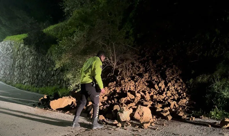 Olay gece saatlerinde Nilüfer ilçesi Çalı Mahallesinde meydana geldi. Son zamanlarda artan yağışlar nedeniyle yol kenarındaki toprak kütlesi yola savruldu. İstinat duvarının olmaması nedeniyle kopan kayalar yola savrulurken, o sırada bölgeden geçen bir sürücü, ani manevra yaparak kaza yapmaktan kurtuldu. Araç sürücüsü kazayı kıl payı atlatırken, o anlar kameraya yansıdı.