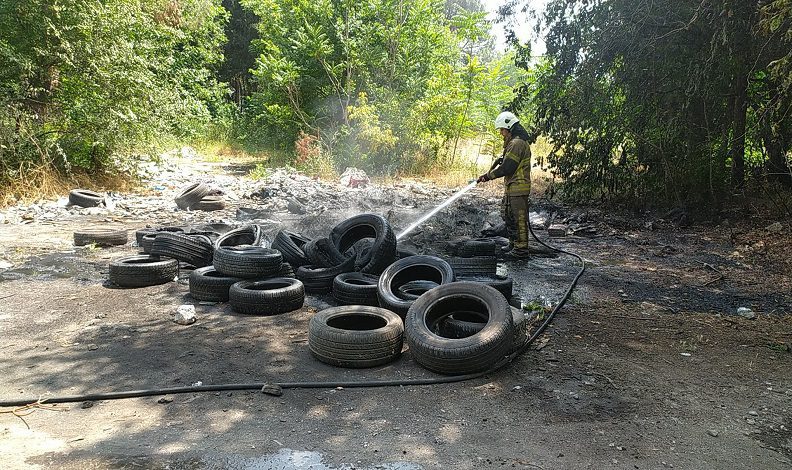 Bursa’da, saat 14.00 sıralarında merkez Osmangazi ilçesi İstanbul Yolu Caddesi üzerinde bulunan ağaçlık alanda meydana gelen olayda iddiaya göre, topladıkları hurda araba lastiklerinin içerisindeki demirleri almak için lastikleri ateşe veren şüpheliler yangın aniden büyüyünce ortadan kayboldu.