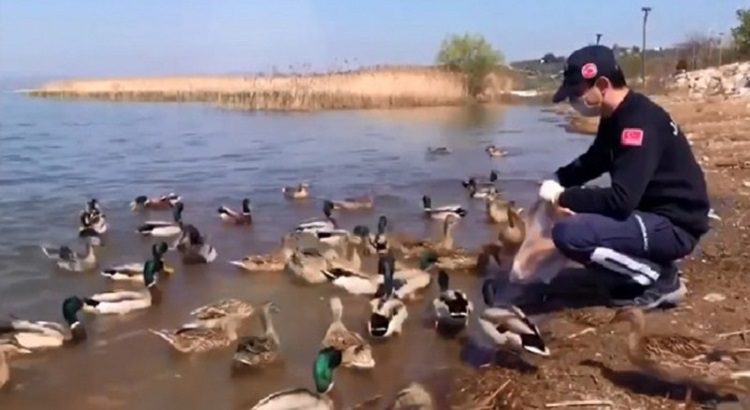 Sağlık ve İçişleri Bakanlıklarının aldığı virüs tedbirlerine uyan milyonlarca Bursalı hafta sonu evlerinde kaldı. Bursa’nın Karacabey ilçesine bağlı Eski Karaağaç Mahallesi’nde ise vatandaşların koyduğu yemlerle karınlarını doyurmaya çalışan yaban ördekleri yem bulabilmek için sahil kenarından ayrılmadı.