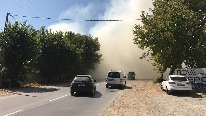 Sürücüler, caddeyi kaplayan duman nedeniyle zor anlar yaşadı.