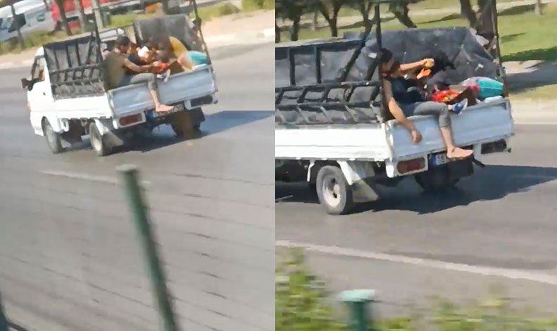 Bursa’da kamyonet kasasında tehlikeli yolculuk