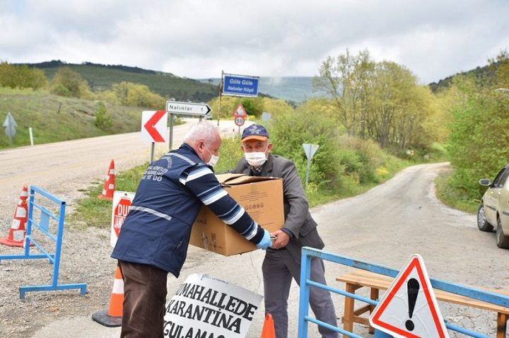 Bursa’nın Orhaneli ilçesinde koronavirüs nedeniyle karantinaya alınan 98 haneli Nalınlar Mahallesi’nin pazar alışverişi, Büyükşehir Belediyesi tarafından yapıldı.