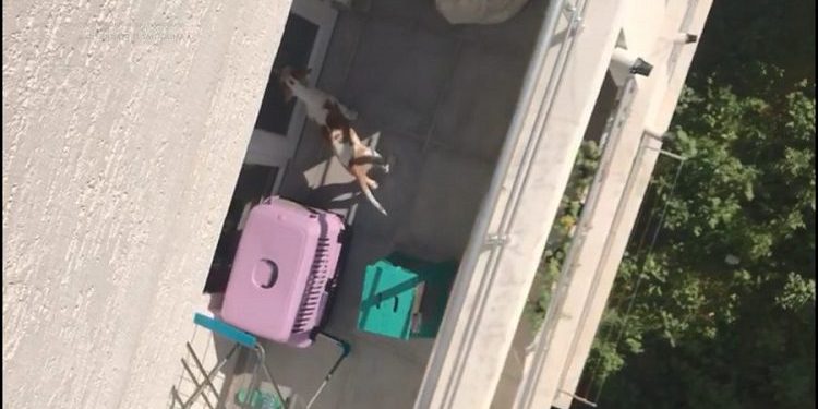 Komşusunun köpeğine bağırarak, kötü davrandığını fark eden Öz, balkonundan bu anları telefonu kamerasıyla kaydetti.