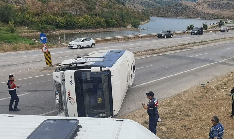 İnegöl’den Mobilya İhtisas Organize Sanayi bölgesinde faaliyet gösteren bir fabrikadaki işçileri almak için yola çıkan sürücü Mesut G. (55) yönetimindeki servis otobüsü, Hamzabey Mahallesi mevkiinde yol çalışması nedeniyle kapatılan yolu son anda fark etti. Frene basan sürücünün kontrolünden çıkan otobüs yol üzerine devrildi. Sürücü kazayı burnu bile kanamadan atlattı.