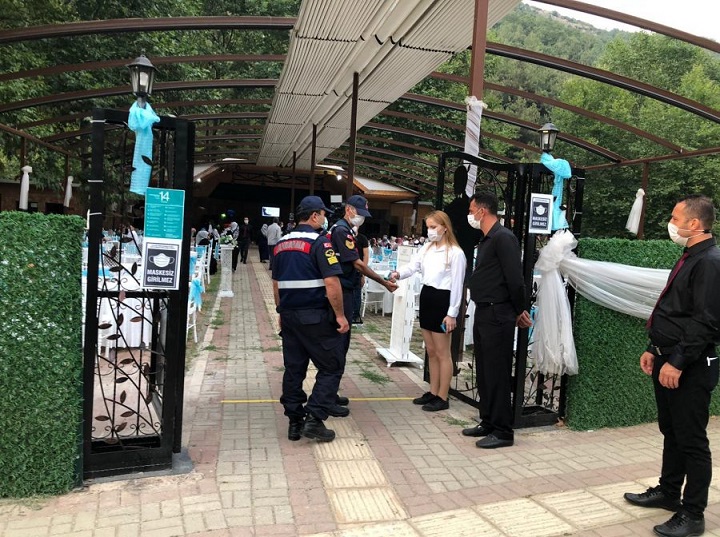 İçişleri Bakanlığı artan koronavirüs vakalarının ardından 81 il valiliğine genelge göndererek kolluk kuvvetlerinin düğün, nişan, kına, sünnet töreni ve mesire alanlarında daha yoğun denetimler yapmasını istedi. Genelgenin ardından Bursa İl Jandarma Komutanlığı ekipleri, kendi bölgelerinde yapılan törenlerde denetim yaptı.